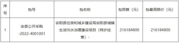 3月10日,河南省安阳县住房和城乡建设局安阳县城镇生活污水治理建设项目(特许经营)-公开招标公告发布,项目预算金额为21618.48万元。